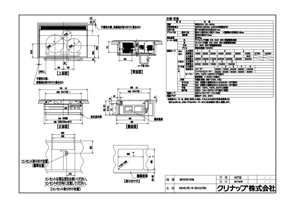 IHクッキングヒーター クリナップ ZEFCZ7B17KSS 3口IHヒーターびっくリングIH