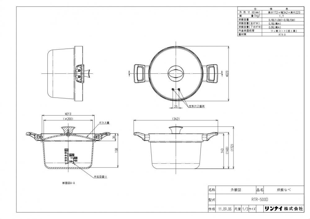 オプション リンナイ RTR-500D 5合炊き炊飯鍋