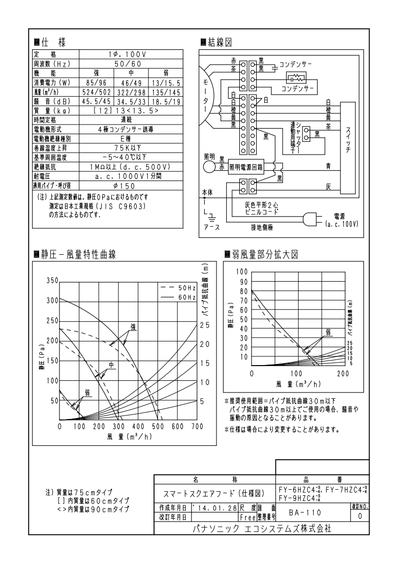 レンジフード Panasonic FY-9HZC4-K 間口90cm ブラック 壁付けタイプ スマートスクエアフード 調理機器連動タイプ 上幕板付き