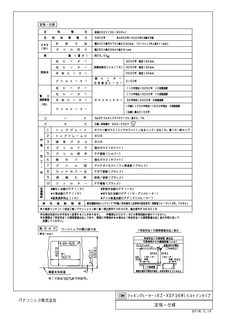パナソニック製(Panasonic)KZ-XSF36W クリアホワイト 3口IH・鉄・ステンレス対応 ▽IHクッキングヒーター