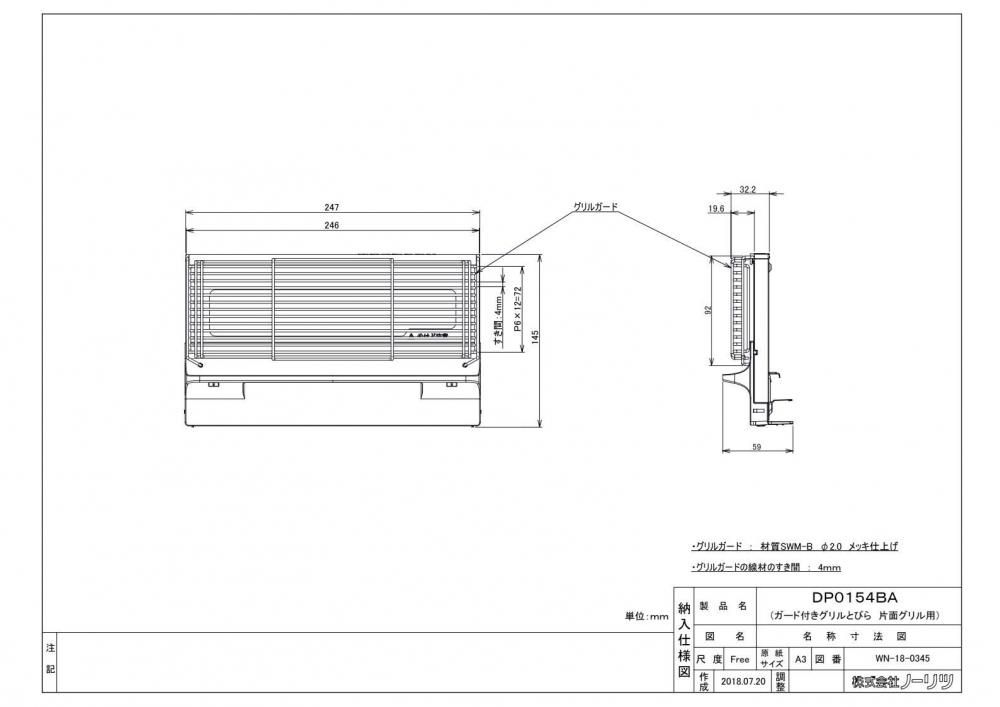 オプション ノーリツ製(NORITZ)DP0154BA ガード付きグリルとびら(メタル片面用)