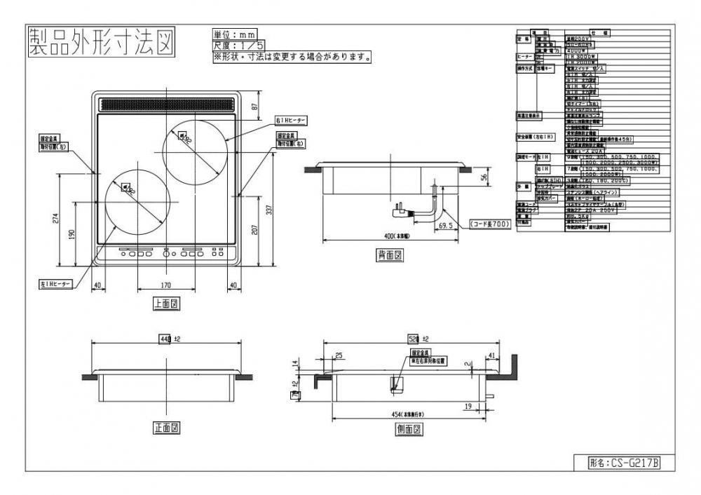 IHクッキングヒーター タカラスタンダード CS-G217BT ブラック 幅45cm対応IHヒーター 2口IHヒーター ブラック