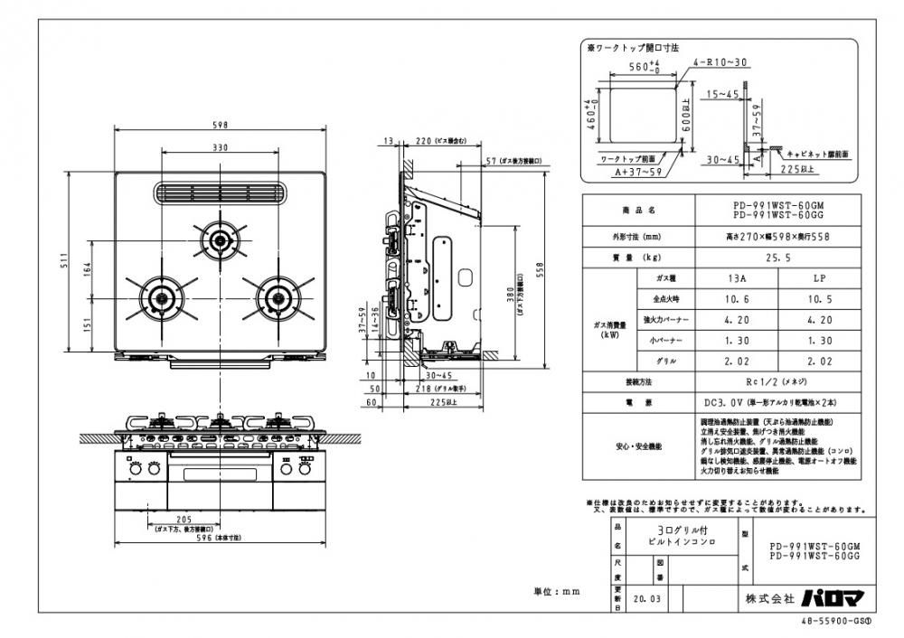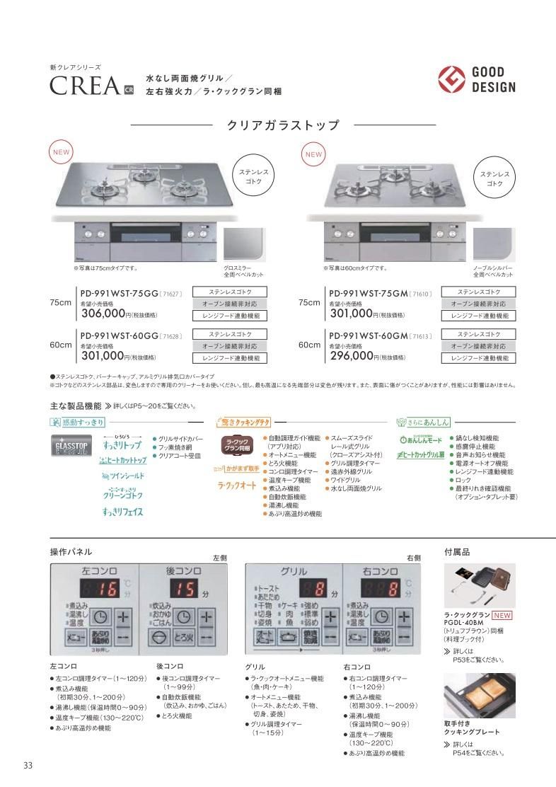ガスコンロ パロマ製(Paloma)PD-991WST-60GM クレア クリアガラストップ ノーブルシルバー 間口60cm