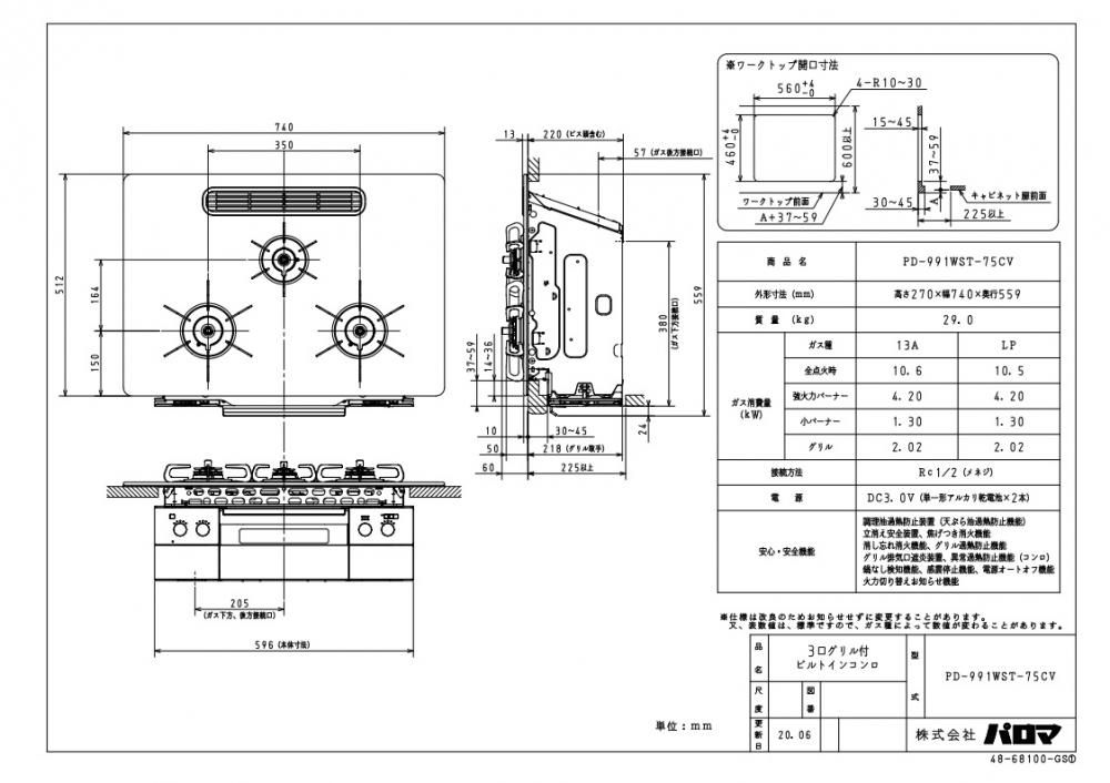 ガスコンロ パロマ製(Paloma)PD-991WST-75CV クレア ハイパーガラスコートトップ ティアラシルバー 間口75cm