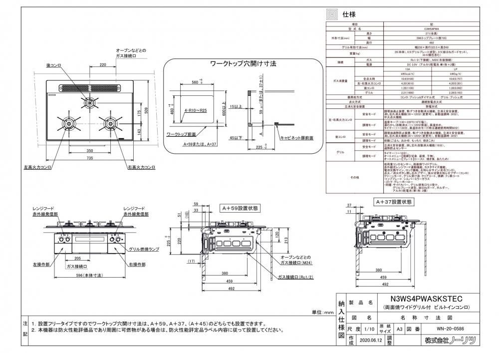 ガスコンロ ノーリツ製(NORITZ)N3WS4PWASKSTEC piatto(ピアット)[ワイドグリル] 間口75cm シルバーミラーガラストップ