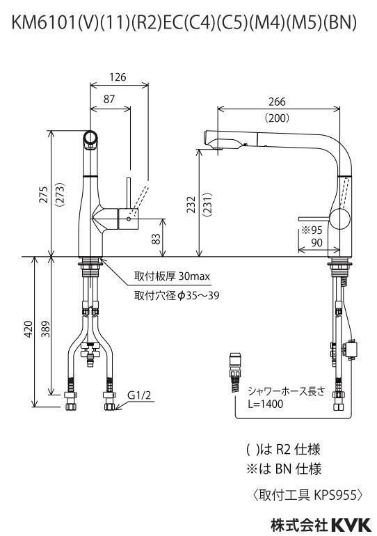 キッチン水栓 寒冷地用  KVK製(KVK)KM6101ZECM4 シングルシャワー付混合栓 吐水口回転規制160°