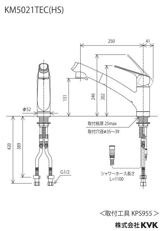 キッチン水栓 寒冷地用  KVK製(KVK)KM5021ZTECHS シングルシャワー付混合栓