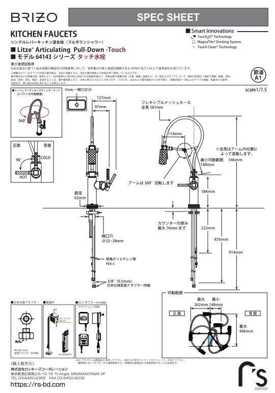 キッチン水栓 デルタ製(DELTA) 64143LF-GL ブリゾ タッチ式 シャワー水栓 リッツェ アーティキュラティング ラックスゴールド