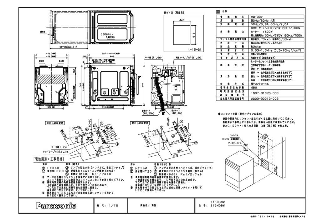 食器洗い乾燥機 パナソニック製(Panasonic)JUGS45MD9W 幅45cm 深型 【扉材別売】
