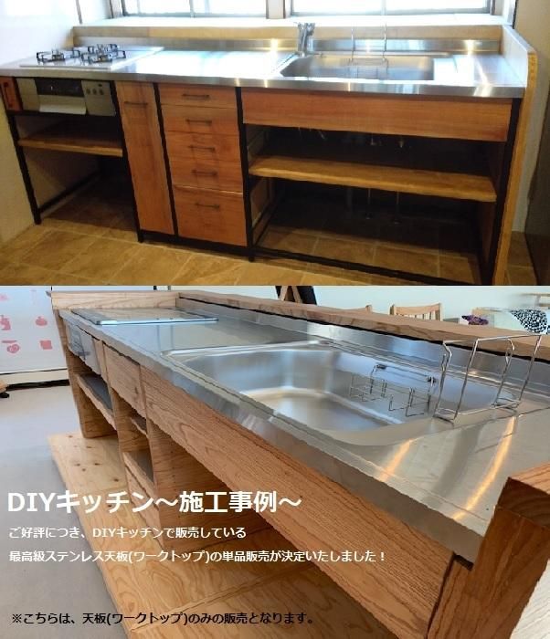 DIYキッチンのワークトップは、水・汚れ・サビ・熱に強く