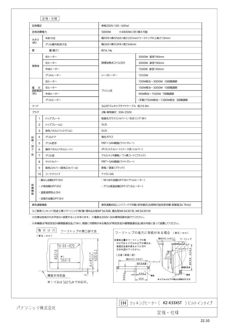 ●タイマー(残り時間):独立式(左右後ろIH:1分〜9時間/グリル(手動)1分〜30分)