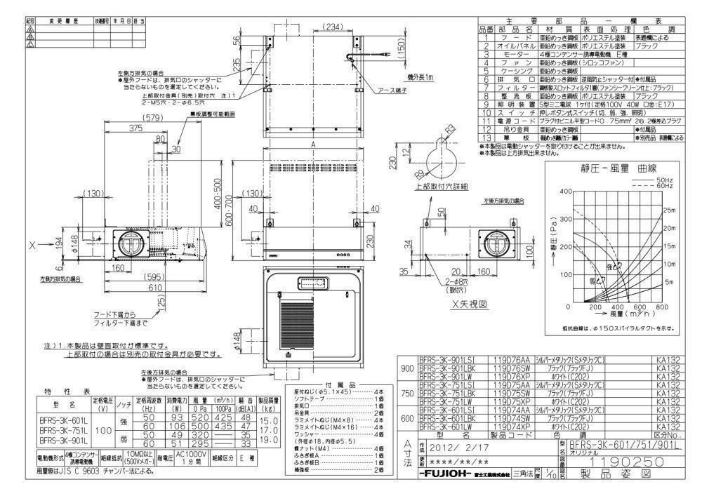 レンジフード 富士工業製(富士工業)BFRS-3K-751R/LSI シルバーメタリック 間口75cm 壁面取付けタイプ BL3型相当風量 上幕板付き