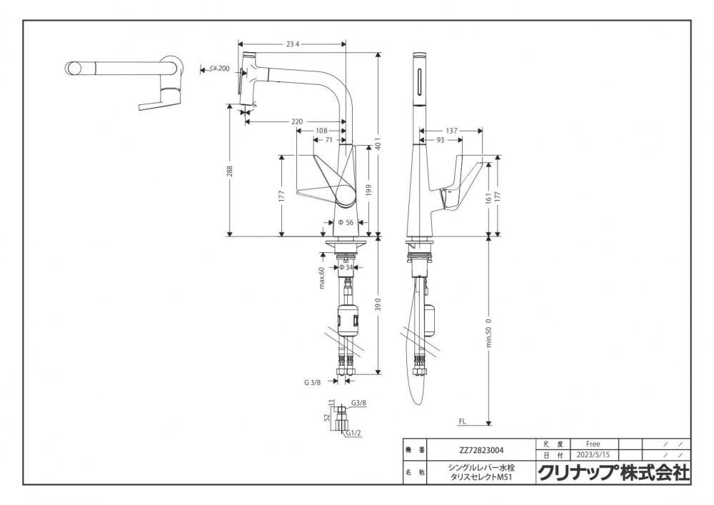 キッチン水栓 一般地用 クリナップ ZZ72823004 シングルレバーキッチン混合水栓 タリスセレクトM51