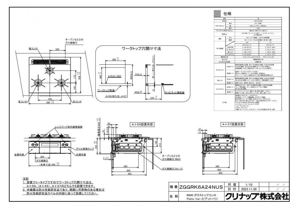 ガスコンロ クリナップ ZGGRK6A24NUS-K ガラストップコンロ piatto vari(ピアットバリ)3口コンロ 間口60cm