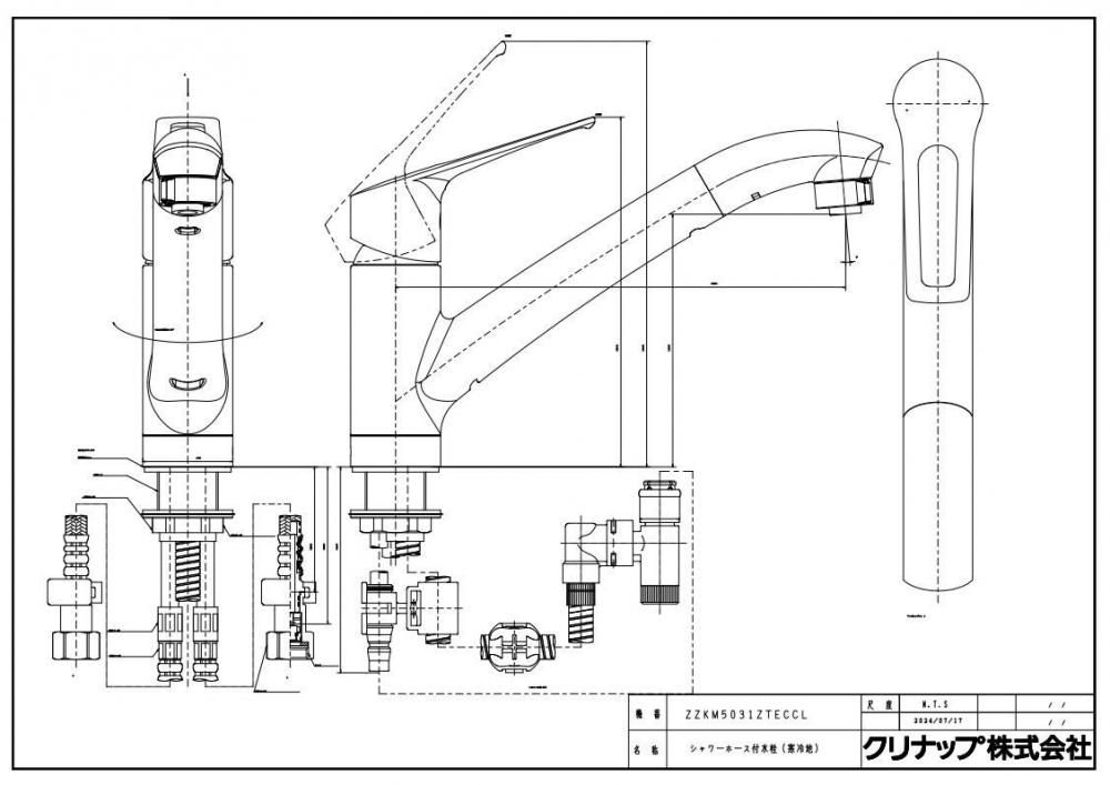 キッチン水栓 一般地用 クリナップ ZZKM5031TECCL-E シャワーホース付水栓