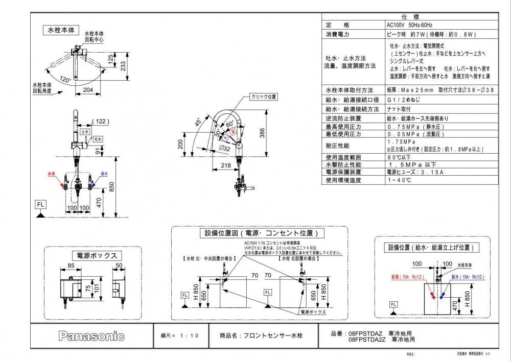 キッチン水栓 寒冷地用 パナソニック製(Panasonic)JUA08FPSTDA2Z フロントセンサー水栓 クロムメッキ