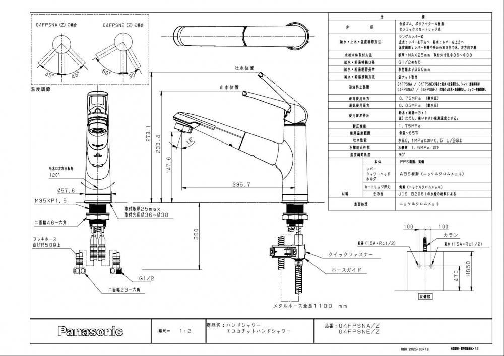 キッチン水栓 一般地用 パナソニック製(Panasonic)JUA04FPSNE 混合水栓ハンドシャワー クロムメッキ