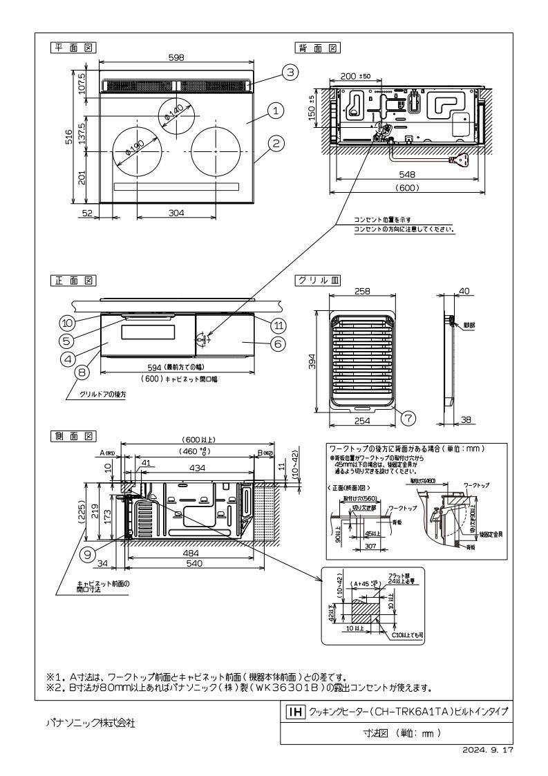 IHクッキングヒーター タカラスタンダード CH-TRK6A1TA 3口IHヒーター 幅60cm ジェットブラック