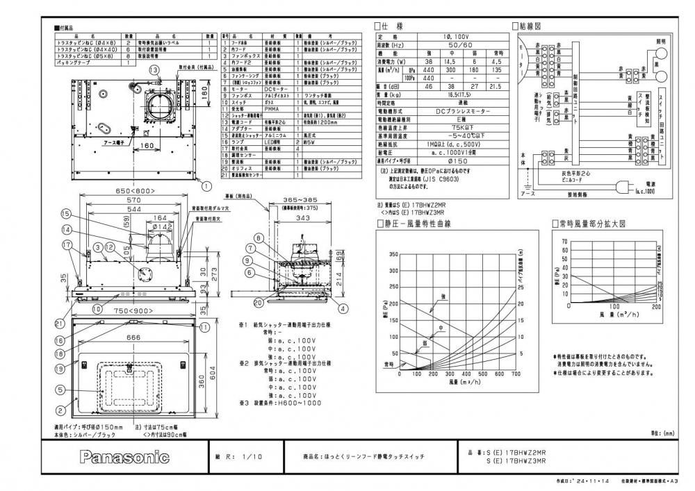 レンジフード Panasonic JUAE17BHWZ3M(R/L) ブラック ほっとくリーンフード静電タッチタイプ 間口90cm 壁付けタイプ 上幕板付き
