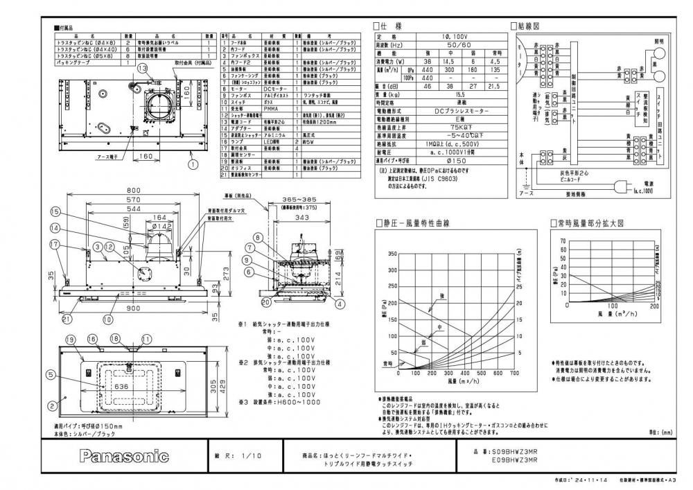 レンジフード Panasonic JUAS09BHWZ3M(R/L) シルバー マルチワイド・トリプルワイド専用 ほっとくリーンフード静電タッチタイプ 間口90cm 壁付けタイプ 上幕板付き