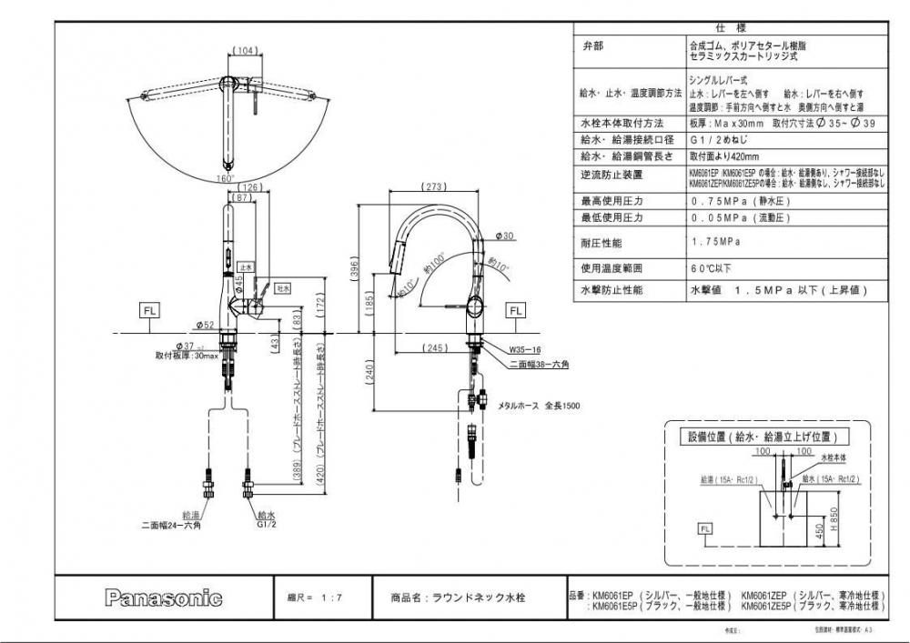 キッチン水栓 一般地用 パナソニック製(Panasonic)JUGKM6061E5P ラウンドネック水栓 マットブラック