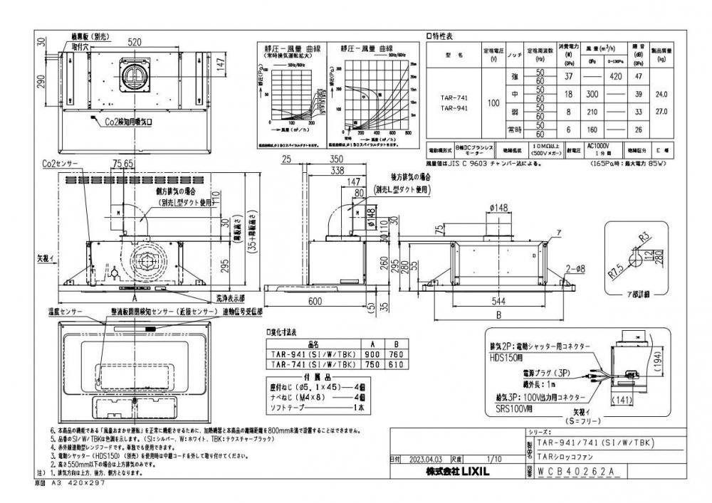 ※TARシリーズの設置高さが54cm未満の場合は上方排気のみとなりますのでご注意ください。