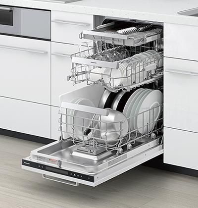 大容量の3段カゴで朝食と昼食2回分をまとめて洗える!