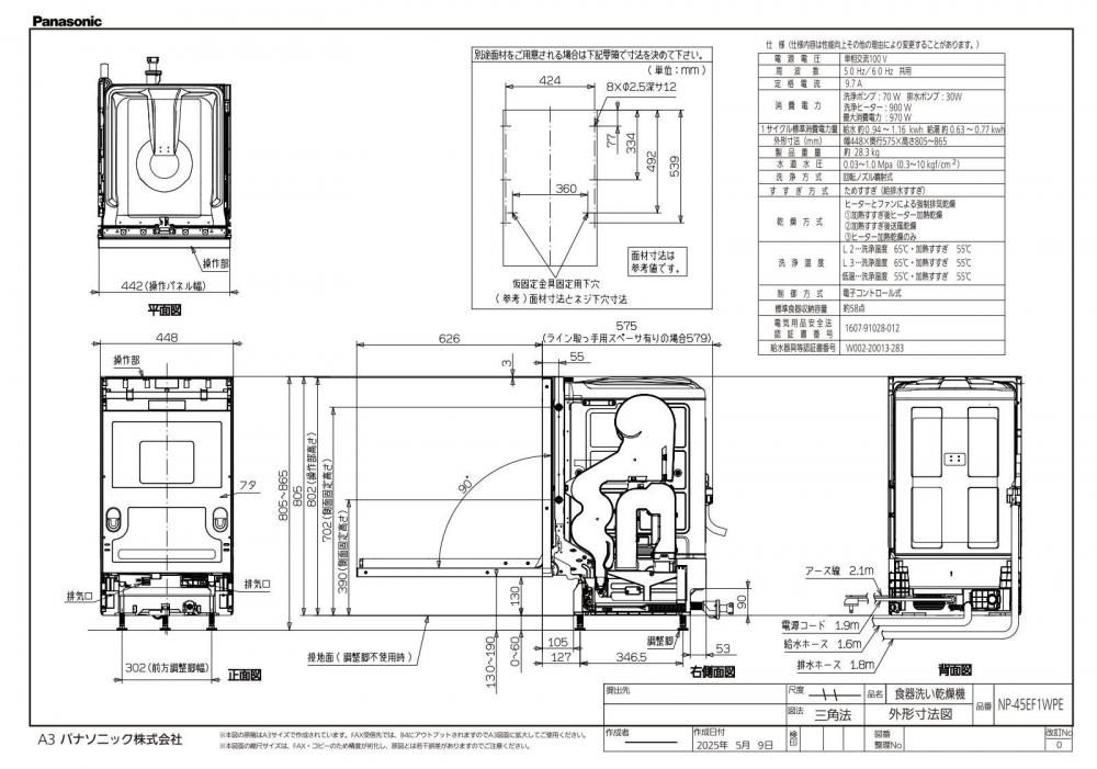 食器洗い乾燥機 パナソニック製(Panasonic)NP-45EF1WPE 幅45cm フロントオープンタイプ 【扉材別売】