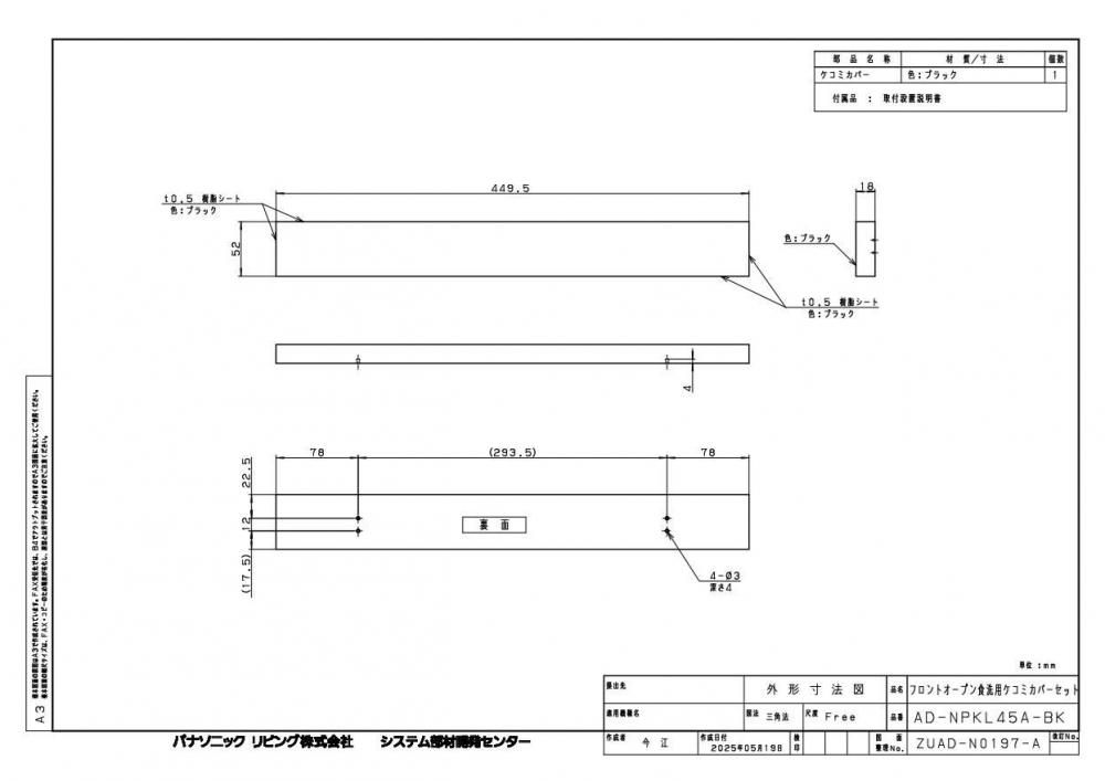 オプション パナソニック AD-NPKL45A-BK フロントオープンタイプ用ケコミカバー ブラック 高さ52mm