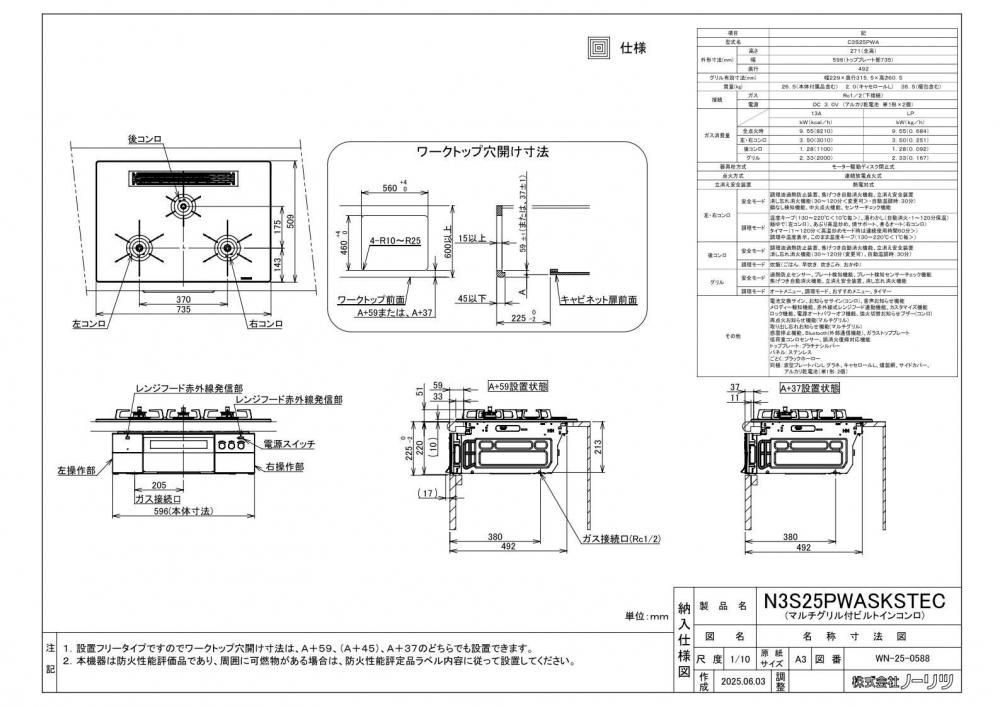 ガスコンロ ノーリツ製(NORITZ)N3S25PWASKSTEC PROGRE(プログレ)間口75cm ブラックホーローごとく プラチナシルバー