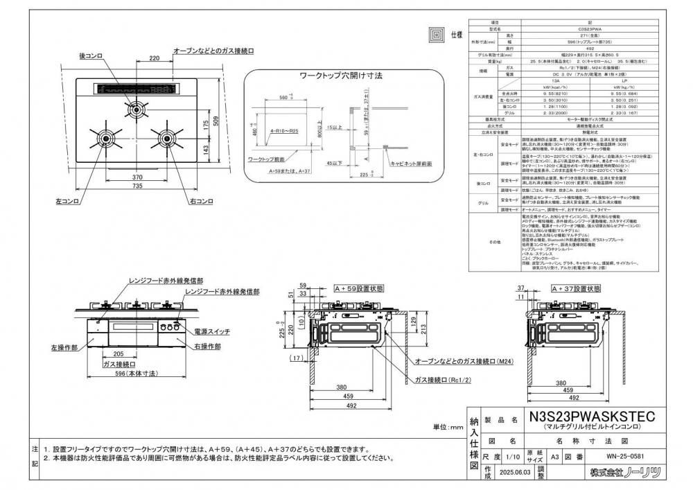 ガスコンロ ノーリツ製(NORITZ)N3S23PWASKSTEC PROGRE(プログレ)間口75cm ブラックホーローごとく プラチナシルバー