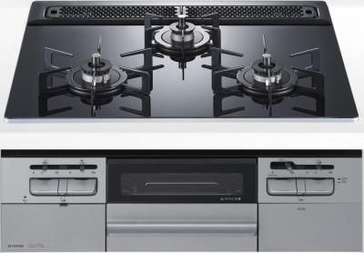 ガスコンロ ハーマン製(Housetec) DW32V6WTP1SV 水無し両面焼き ガラストップ 3口コンロ シルバー 間口60cm