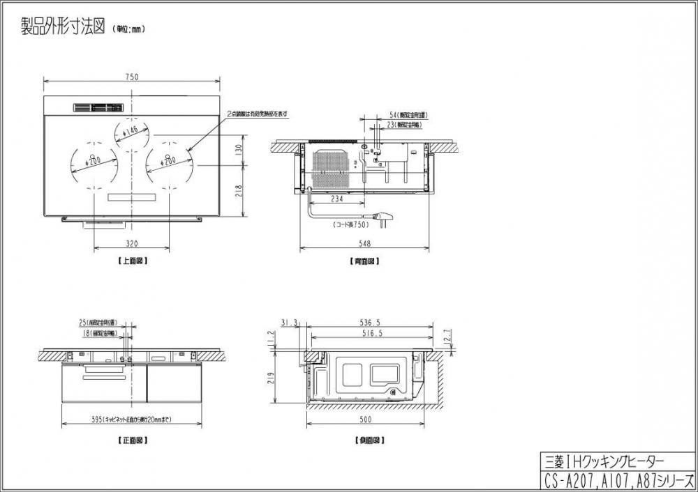 IHクッキングヒーター 三菱電機製(MITSUBISHI)CS-A207-S 3口IH 間口75cm マットシルバー