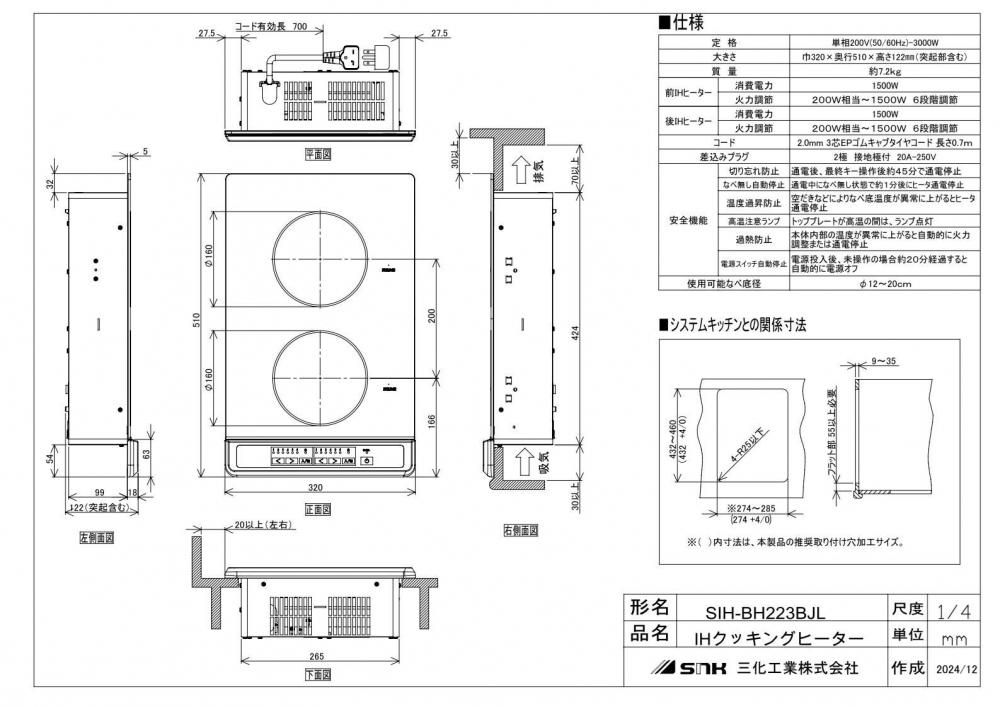 ●定格:単相200V(50/60Hz)-3000W